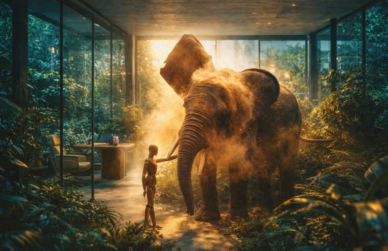 Erstaunlich viele Menschen stimmen zu. Sie posten es, sie liken es, sie würzen es mit Buzzwords und Banana-Pro-Hashtags. Und während sie da stehen und kollektiv das Marketing zu Grabe tragen, rühren sie heimlich in der Fertigsauce, die ihnen ChatGPT, Midjourney und Canva gerade in 2 Minuten angerührt haben.