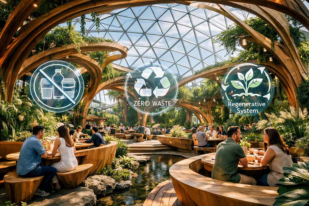 Stell dir vor, du betrittst ein Bio-Fast-Food-Restaurant aber nichts daran wirkt wie Foodservice, sondern wie ein Zwischenstopp auf einem Siedlungsraumschiff.
