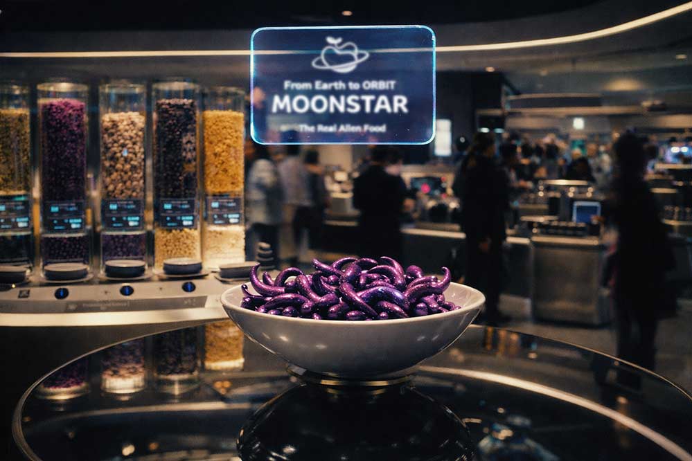… seien wir ehrlich: Gemüse ist nicht das Problem. Es ist die wie bereits gesagt die Präsentation. Während Fleisch jahrzehntelang als Krönung der Zivilisation galt scharf gebraten, von Flammen umschlungen wie ein Gladiator der Geschmacksknospen wurde Gemüse wie der nerdige Cousin behandelt, der zu Besuch kommt und fragt, ob er das WLAN-Passwort bekommen kann. Die Revolution beginnt deshalb in der Verpackung. Eine durchsichtige Scheibe. Schalen, die wie UFOs aussehen. Eine Theke mit Kompostprofil, in der Bohnenkeimlinge leuchten wie Sterne. Keine Mythologie, keine Symbolik, nur reale Nährstoffketten, sichtbar, essbar, verlässlich. Wer jetzt an genmanipulierte Aliens denkt, hat das Prinzip nicht verstanden. MOONSTAR ist keine Science-Fiction es ist Science-Fact!