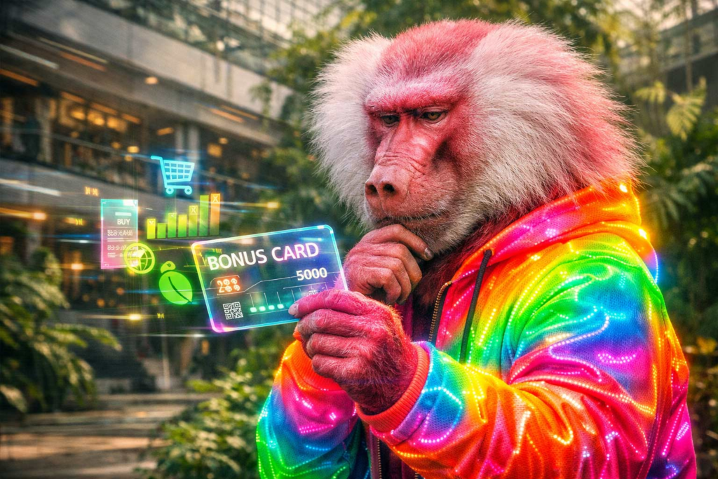 Das Modell funktioniert wie eine Konsum-Impfung. Der erste Pullover 50% günstiger, weil Bedarf plausibel ist. Der zweite 60%, der dritte 80%, der vierte 90%. Und ab dem fünften innerhalb einer Saison wird es teurer, aus ethischen und ökologischen Gründen, aber vor allem aus logischen. Denn ab da ist es keine Versorgung mehr, sondern Sammlung, Kompensation, Dopamin. Kopplung an die Kreditkarte sorgt dafür, dass das System ein Gedächtnis hat. Nicht um Menschen zu demütigen, sondern um die Realität endlich einzupreisen: Wer viel kauft, verursacht viel. Dann soll er auch viel zahlen.