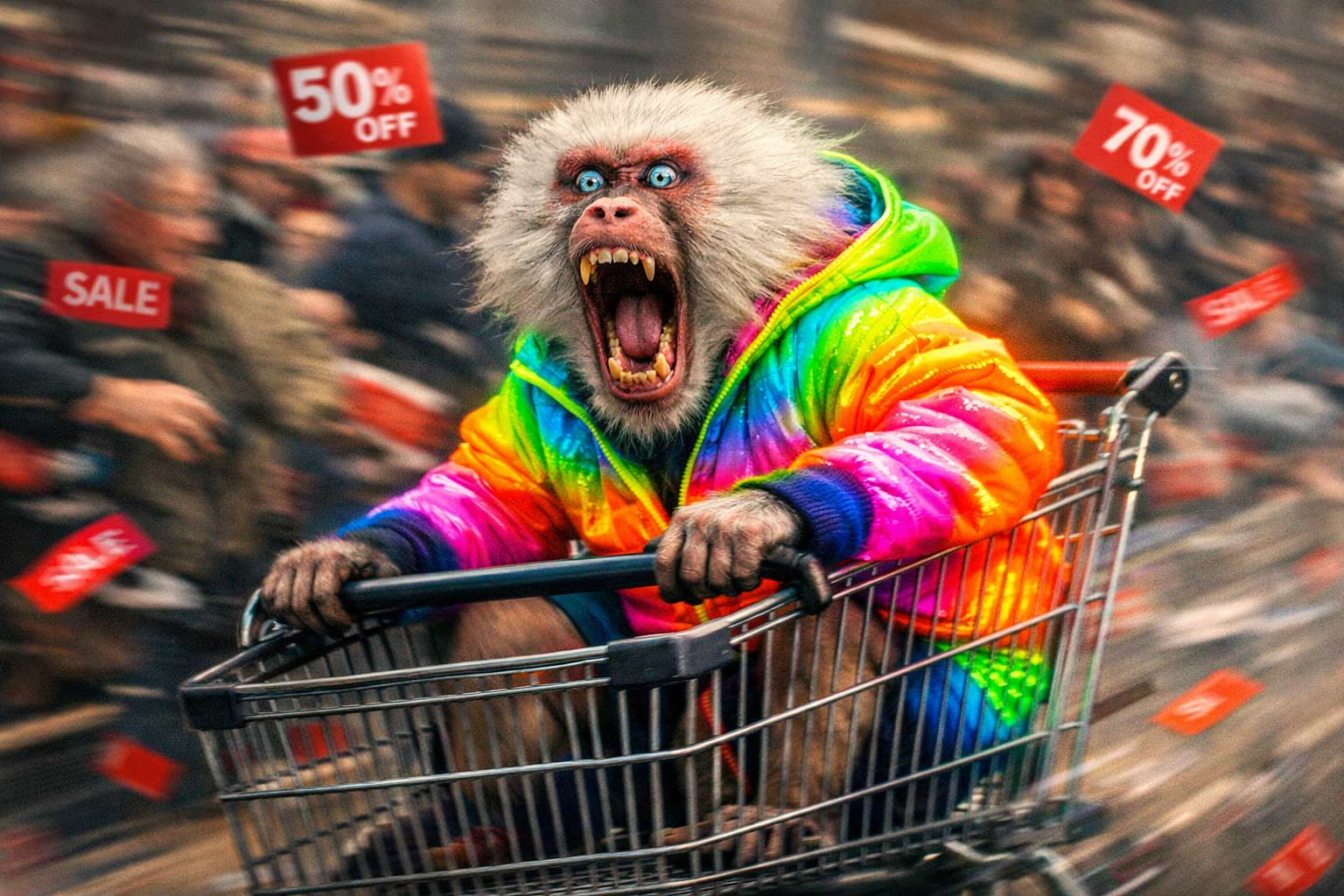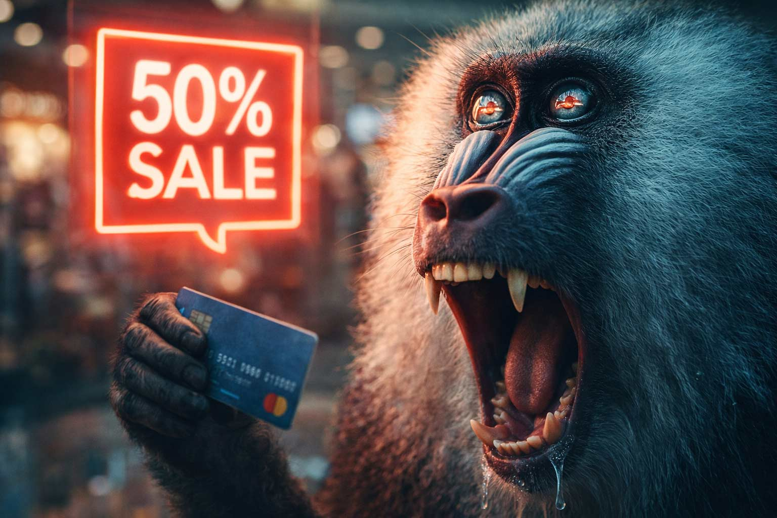 Wer heute „50% reduziert“ liest, spürt in etwa dasselbe wie ein Pavian, dem man die Bananen mit Ritalin mariniert hat: eine Mischung aus instinktloser Gier und kurzzeitiger Euphorie, gefolgt von tiefer Verachtung für die eigene Spezies.