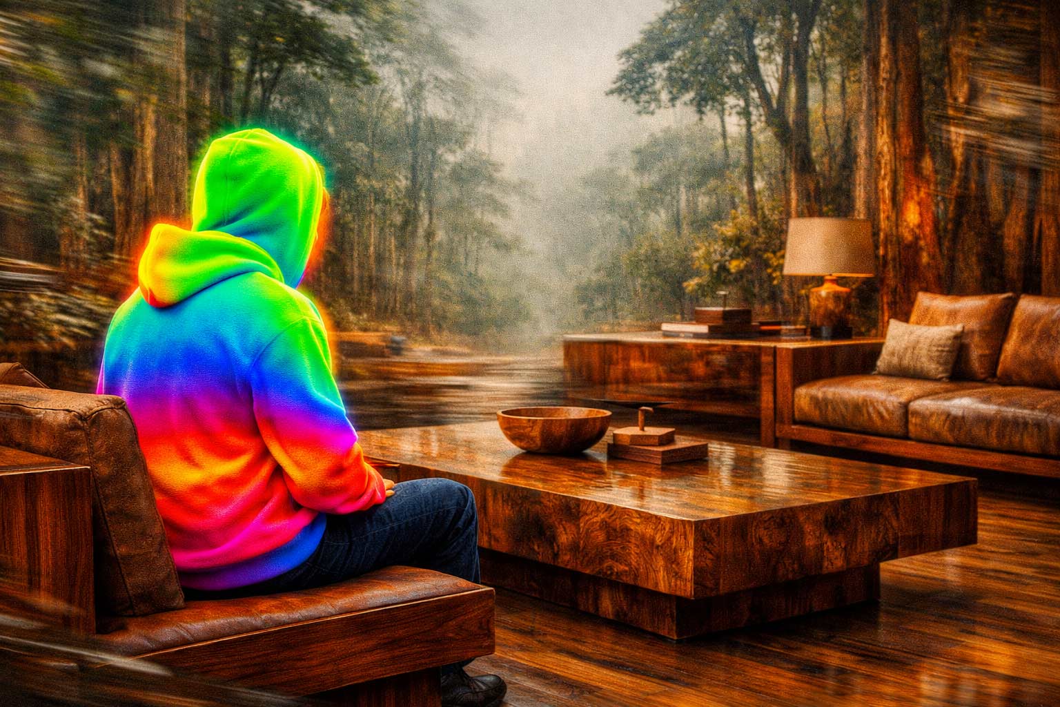 Währenddessen zählt der Regenwald Bäume wie ein Notar die Insolvenzmasse, und wir sitzen drinnen auf Mahagoni und Palisander, als wäre das eine ästhetische Wahl und nicht der Endpunkt einer Lieferkette, die man nur deshalb ignoriert, weil Lack so schön glänzt.