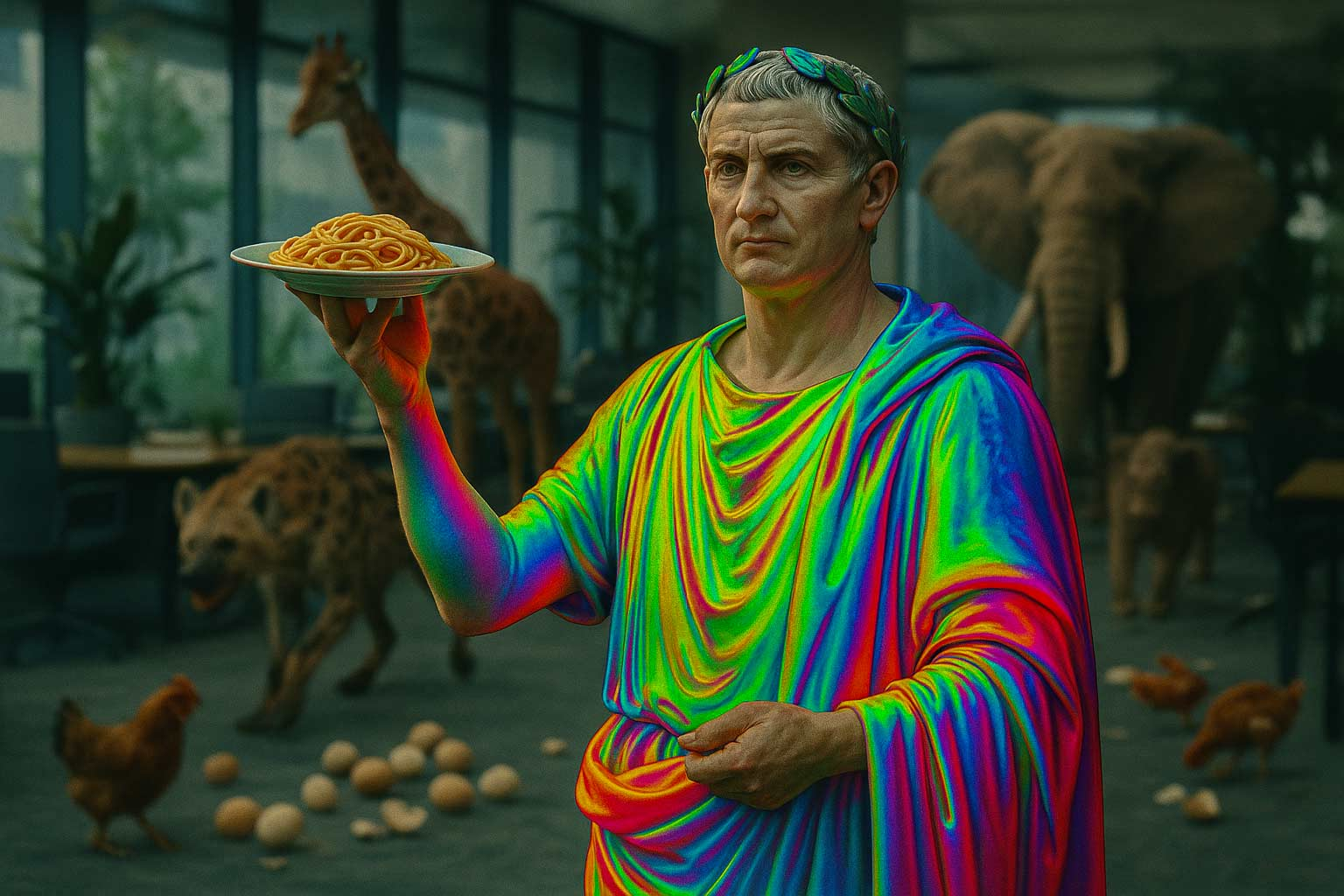 … der Epoche, in der Julius Cäsar die To-do-Listen in Excel pflegen, Seneca LinkedIn-Posts über „Mindfulness im Senat“ verfassen und Caligula zur Teambuilding-Maßnahme sein Pferd als Abteilungsleiter einstellen würde. Die großen Dramen von damals? Heute ein All-you-can-eat-Buffet für ambitionierte Mikrochefs, Instagram-Philosophen und die Generation, die weiß: Wer zu lange an der Spaghetti zieht, hat am Ende Nudelsalat.